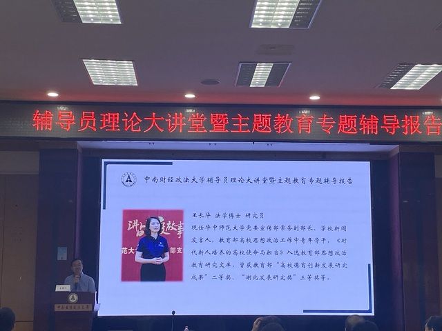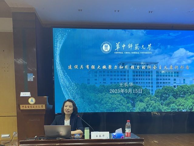(通讯员 沈鹏飞 摄影 牛静)5月15日上午,学校辅导员理论大讲堂暨主题教育专题辅导报告在文潭楼四楼报告厅举办。华中师范大学党委宣传部常务副部长、学校新闻发言人、教育部高校思想政治工作中青年骨干、教育部思想政治教育研究文库入选者王长华作《建设具有强大凝聚力和引领力的社会主义意识形态》专题辅导报告。全体辅导员到场参加学习,活动由我校党委学生工作部、人民武装部部长余小朋主持。