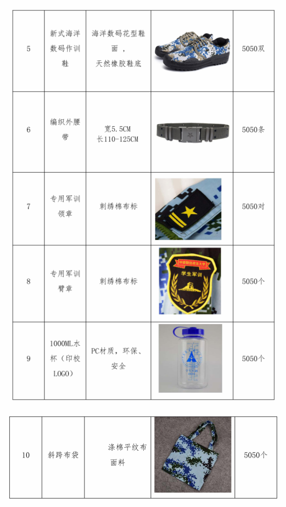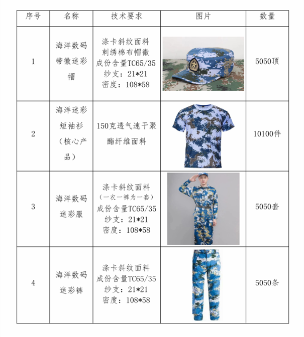采购需求:2023年度5050套学生学生军训服装,具体内容如下: