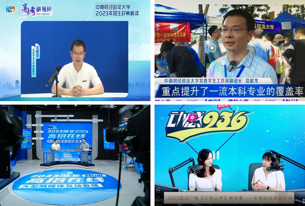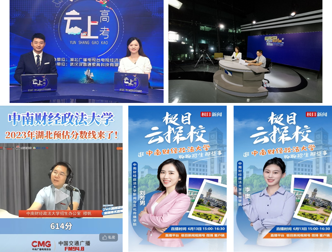 2.注重线上精心直播。党委学生工作部负责人范献龙做客新华网2023高考情报局,重点介绍我校“希贤计划”拔尖创新人才培养项目。招生办公室依托中国交通广播、中国教育在线、湖北广播电视台、武汉广播电视台、极目新闻、荆楚网、湖北日报等媒体平台开展招生宣传,做到宣传全覆盖。据不完全统计,相关直播观看量突破500万。
