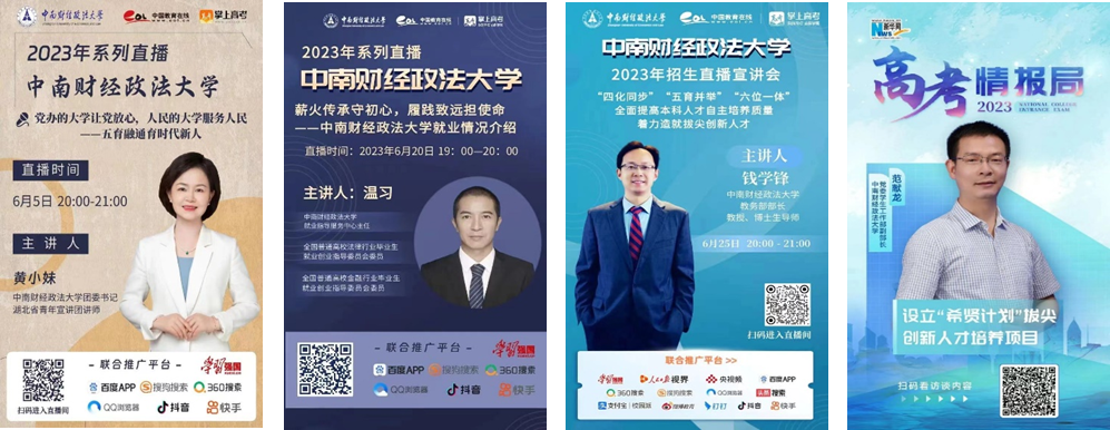 3.学校特色讲解到位。精铸“院长直播”品牌,6月9日—6月23日,15位院长先后走进直播间,向广大学子全面展示中南大概况、历史沿革、学科建设、师资力量、就业升学等情况,帮助高三考生及家长提前了解专业前景,做到专业选择心中有数。校团委、就业指导服务中心、教务部主要负责人和党委学生工作部负责人开展专场直播,全方位介绍招生政策、校园文化、就业情况、人才培养等。