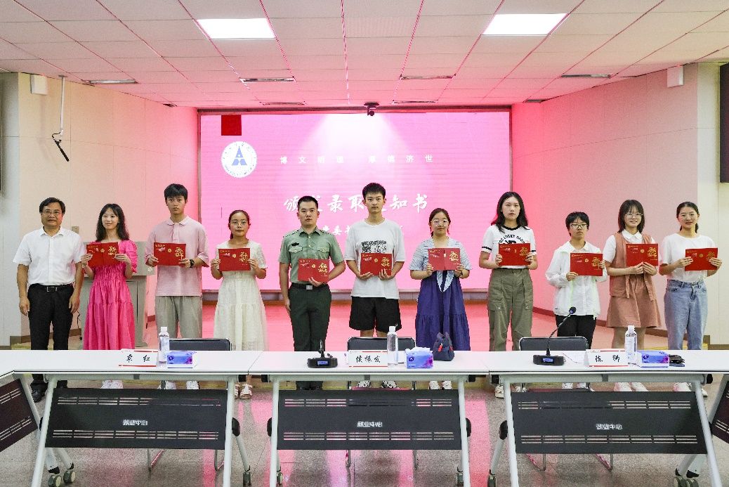 (通讯员 凌鸿翔 牛静 摄影 彭佳)7月24日上午,学校举办2023级本科新生录取通知书颁发仪式暨新生代表座谈会。校党委书记侯振发,校党委副书记陈狮,校党委常委、副校长覃红出席,党委办公室、学校办公室主任刘建明,党委学生工作部兼人民武装部部长、工商管理学院党委书记余小朋,党委学生工作部兼人民武装部副部长范献龙,后勤保障部副部长、学校第八批驻村工作队队长刘进明,10名2023级本科新生及家长参加。仪式由陈狮主持。