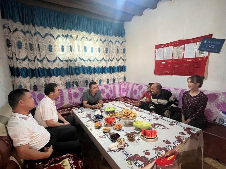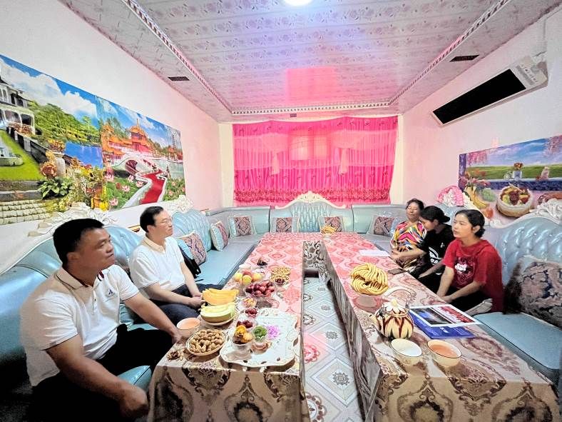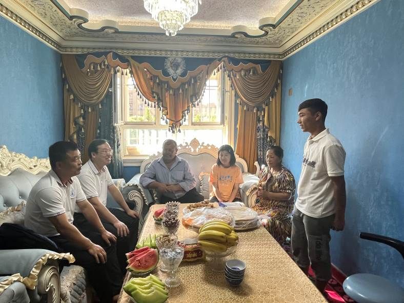 调研组在2022级本科生热妮罕·玉苏普家中开展家访交流