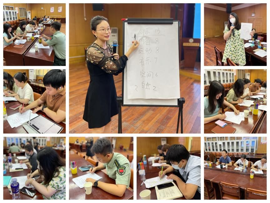 在整个活动中,余璇边带领大家体验团辅,边在关键节点解释设计该环节的原理和目的,老师们积极发言,现场研讨氛围热烈。余璇结合实际案例,向大家讲解了非智力因素在学习效能上的影响,并介绍了“木桶理论3.0”,外国语学院本科生辅导员吴章凡从知识属性的角度出发,在现场提出了“木桶理论4.0版本”,引来在场老师们的连连赞叹。