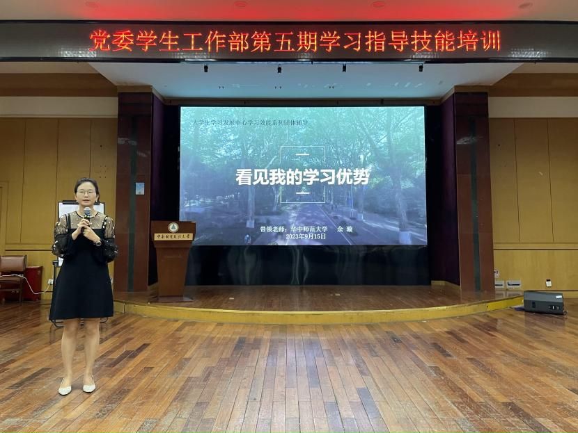 (通讯员 郭小义)9月15日上午,党委学生工作部在文潭楼四楼报告厅举办第五期学习指导技能培训。本次培训邀请华中师范大学生命科学学院本科生辅导员余璇担任主讲人,主题为《大学生学习风格探索团体辅导的带领与实践》。校党委学生工作部副部长石凌,全校学习发展指导导师和各学院学习发展中心联络人参加培训。