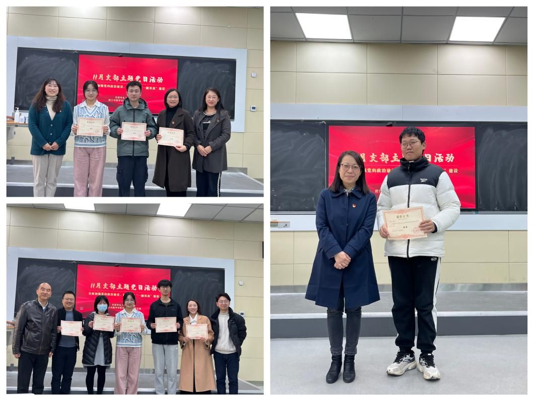 为深入学习贯彻习近平新时代中国特色社会主义思想和党的二十大精神,进一步激发党员学习积极性与主动性,本次活动还精心准备了党建知识竞答活动,题型包括单选、多选、判断和简答。主持人现场抽题,师生党员抢答,现场气氛热烈,最终学生党员帅浩仁凭借最高得分获得竞答活动一等奖。