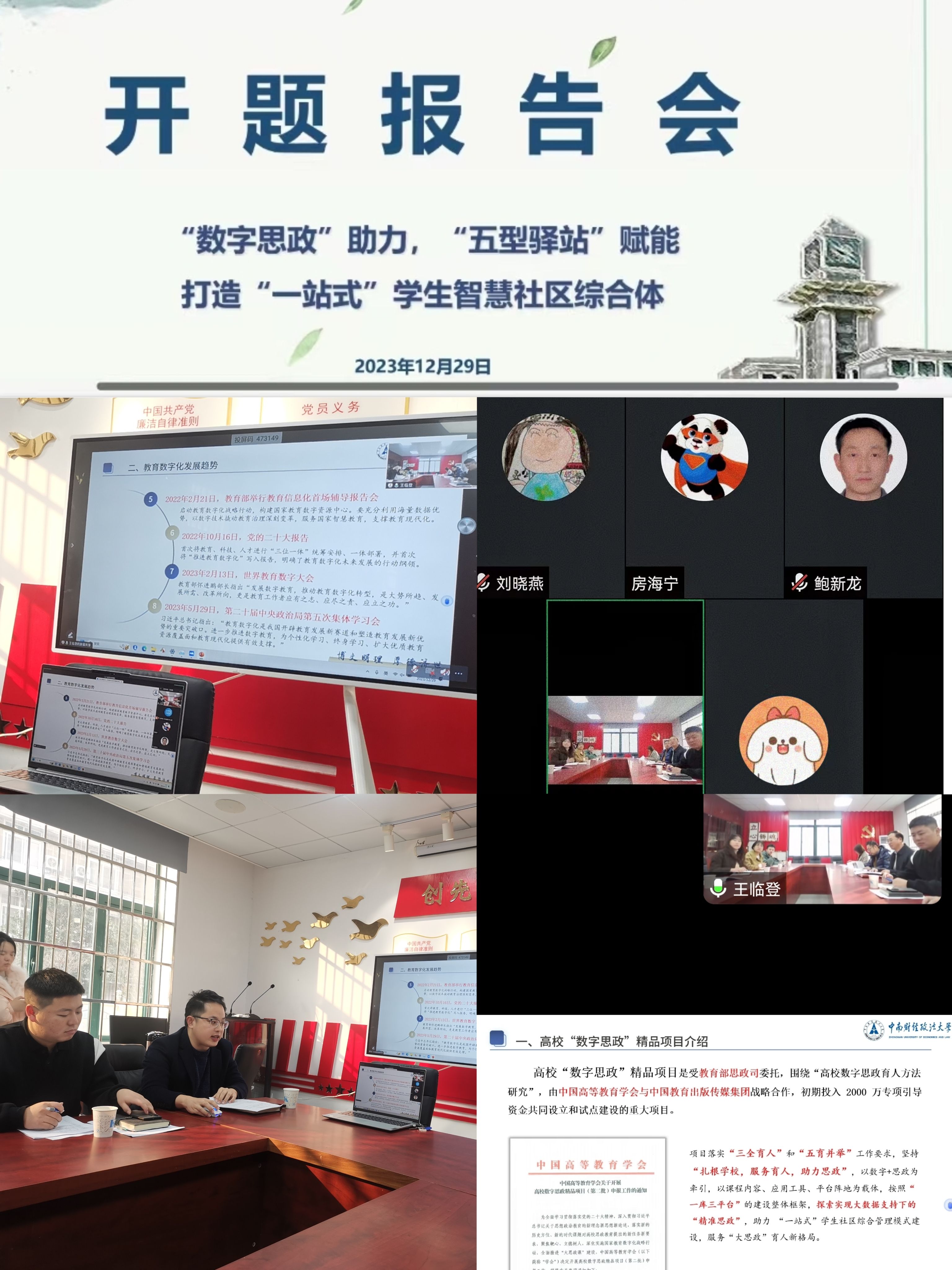 (通讯员:王临登 刘微 范纯琍)为全面学习贯彻党的二十大精神,落实立德树人根本任务,推进数字思政育人工作走深走实,“数字思政”项目团队于12月28日--29日召开项目咨询论证会和开题报告会。党委学生工作部副部长刘晓燕主持相关会议。