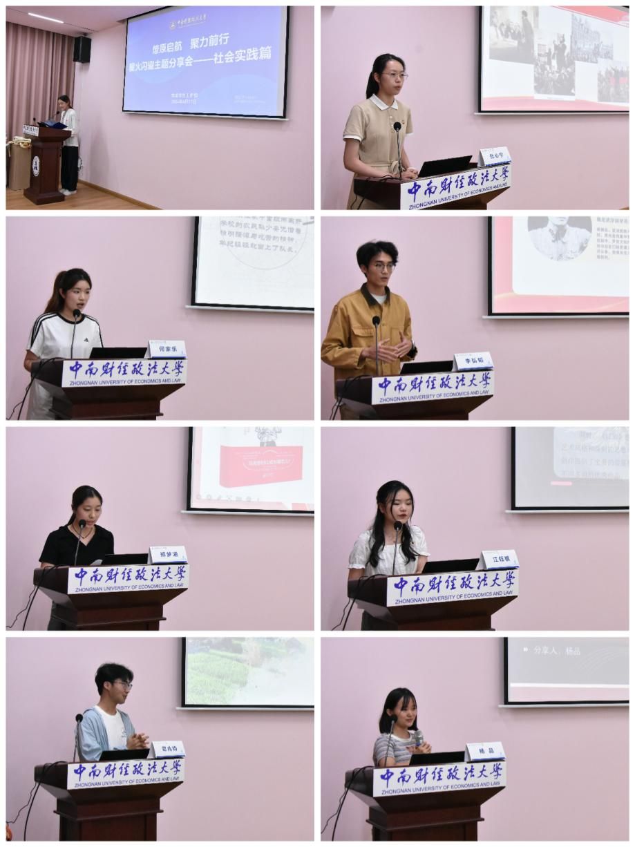 社会实践分享环节,来自工商管理学院的葛兆钧同学以乡村振兴类社会实践经历为例,从前期准备、中期实施到后期总结三个维度为大家提供指导。来自法学院的杨品同学从项目创作层面,讲述他们团队在不同阶段为项目作出的努力,从心理预期、知识储备、申报书写作等层面为大家提供宝贵经验。