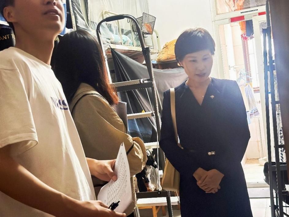 程明梅和彭东针对同学们提出的宿舍漏水、低楼层阴暗潮湿、个别宿舍存在白蚁等问题进行了积极回应和一一登记,确保大家在一个安全卫生的环境中学习和生活。
