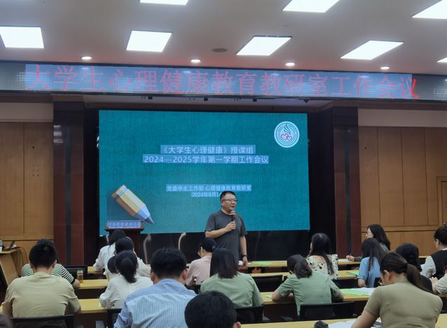 (通讯员 何红娟)9月14日上午,党委学生工作部心理健康教育咨询中心在文潭楼四楼学术报告厅召开工作会议,党委学生工作部、人民武装部部长王前哨,党委学生工作部副部长刘晓燕以及心理健康教育教研室全体专兼职教师共50余人到场参加,会议由心理健康教研室主任何红娟主持。