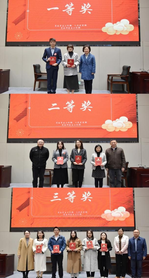 最终,在个人奖项中,王秋菊、汪子昂获得大赛一等奖,林昇、马晨娇、刘千惠获得二等奖,黎玥、章伟晨、褚晶晶、田雨、石玉获得三等奖,张冉、袁笑雨、钟唯、余安琪、易涵、水晶晶、岳明泽、姜倩倩、李梦梵等老师获得优秀奖;团体奖项中,公共管理学院获得一等奖,金融学院、法律硕士教育中心获得二等奖,马克思主义学院、中韩新媒体学院、信息工程学院获得三等奖。