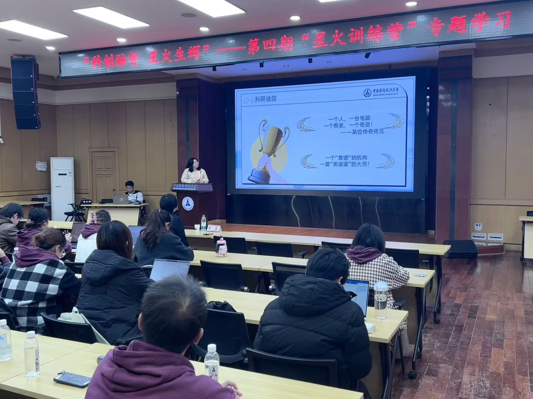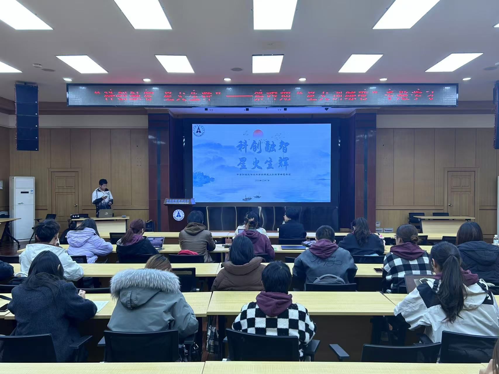 为助力同学们培养学术志趣、夯实科研能力,12月7日下午,文潭楼四楼报告厅开展了一场别具一格的“科创融智 星火生辉”专题学习,本次活动邀请学校科学研究部、社会科学研究院科研诚信办公室主任王淑珺与第二期“星火训练营”学员代表徐睿作分享,第四期“星火训练营”全体营员参加。