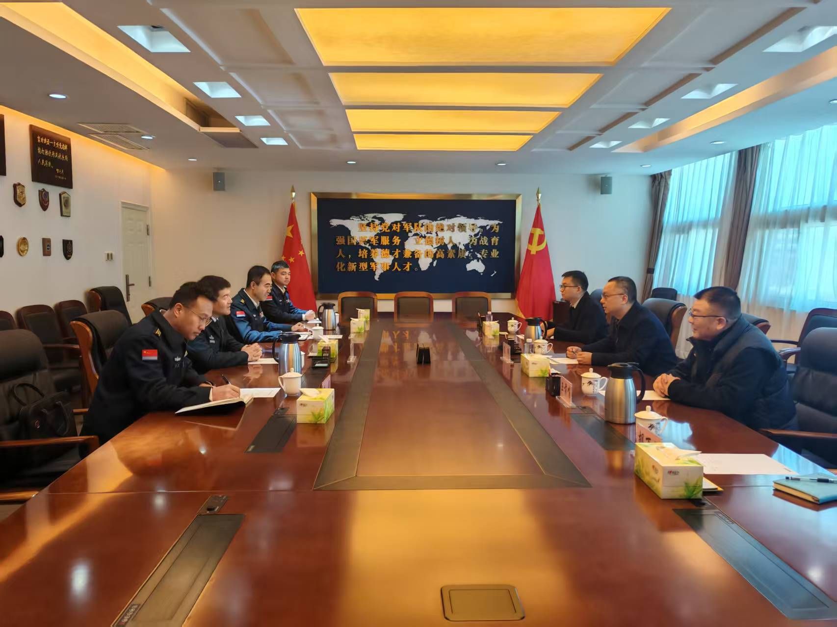 近日,校党委副书记陈狮带队前往海军工程大学开展新春慰问及座谈交流,党委学生工作部兼人民武装部部长王前哨、副部长白雷及人民武装部工作人员陪同前往。