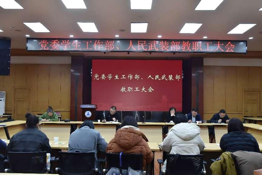 (通讯员 傅玲珑)2月22日下午,党委学生工作部、人民武装部新学期第一次教职工大会在文潭楼四楼报告厅召开,部门领导班子成员、各科室负责人、教研室负责人以及全体教职工到场参会。会议由党委学生工作部、人民武装部部长兼党支部书记王前哨主持。
