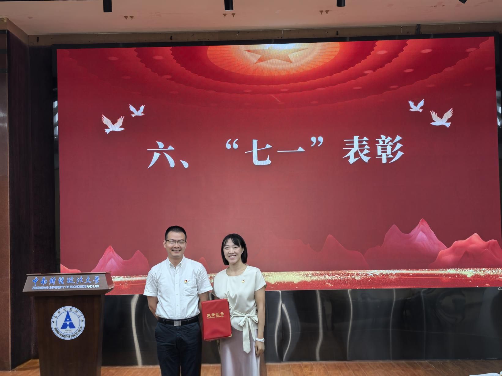 在表彰环节,范献龙宣读了《中共米兰电竞·(中国区)委员会关于表彰优秀共产党员、优秀党务工作者和先进基层党组织等的决定》,随后为获评学校“优秀教职工党员”称号的黄艳同志颁发荣誉证书。