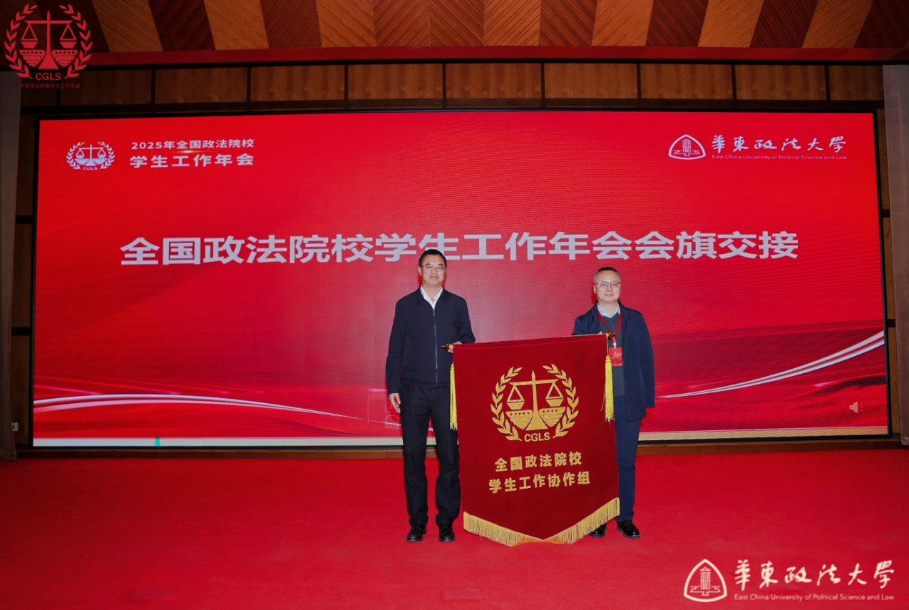 根据本次年会决议,2026年全国政法院校学生工作年会将由我校承办。会上举行了会协作组会旗交接仪式,陈狮代表学校上台接旗并作表态发言,向各兄弟院校发出了相约英雄之城,共话发展大计的邀请。