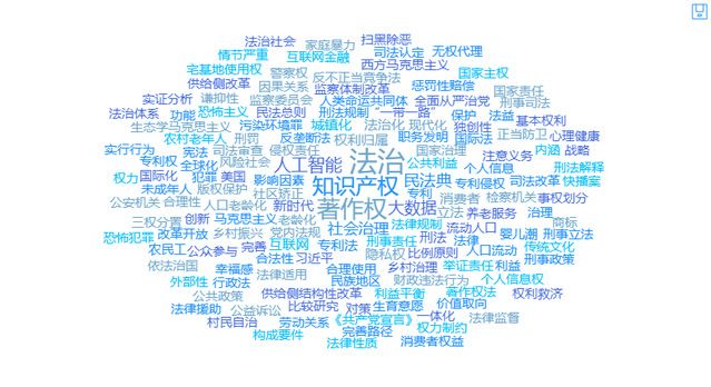 图1给出了2017-2019年米兰电竞·(中国区)法学科学研究的相关热词。“知识产权”、“著作权”和“法治”依旧是学者们重点关注的三大关键词,词频分别为29、27和24。“人工智能”、“大数据”的词频分别为20和14,排名分别为第四和第五,是近些年学者们较为关注的领域。此外,“社会治理”、“民法典”的热度也较高,词频分别为16和14。