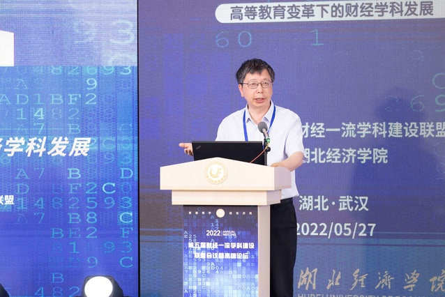 财经一流学科建设联盟秘书长高利红主持大会主旨报告环节。我校副校长邹进文、广东财经大学校长于海峰、内蒙古财经大学校长杜金柱、浙江财经大学副校长王奎泉、湖北经济学院党委副书记刘大洪分别围绕新文科建设、数字化引领财经高校教育高质量发展、新时代高层次财经人才培养、数智化背景下财经类学科交叉人才培养、数字经济时代财经院校学科建设和人才培养作主题报告。