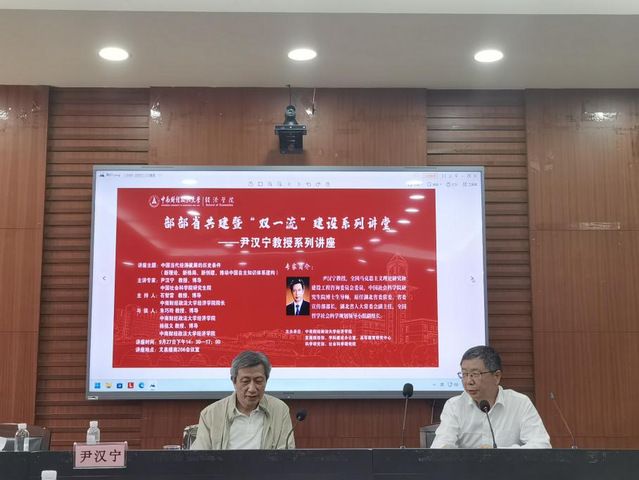 2024年9月27日下午14:30,部部省共建暨“双一流”建设系列讲堂——尹汉宁教授系列讲座第三期在文泉楼南206会议室举行。副校长邹进文、经济学院原党委书记胡江滨、发展规划部部长高利红、经济学院院长石智雷,发展规划部副部长徐会超以及经济学院的师生等100余人参加。讲座由石智雷主持。