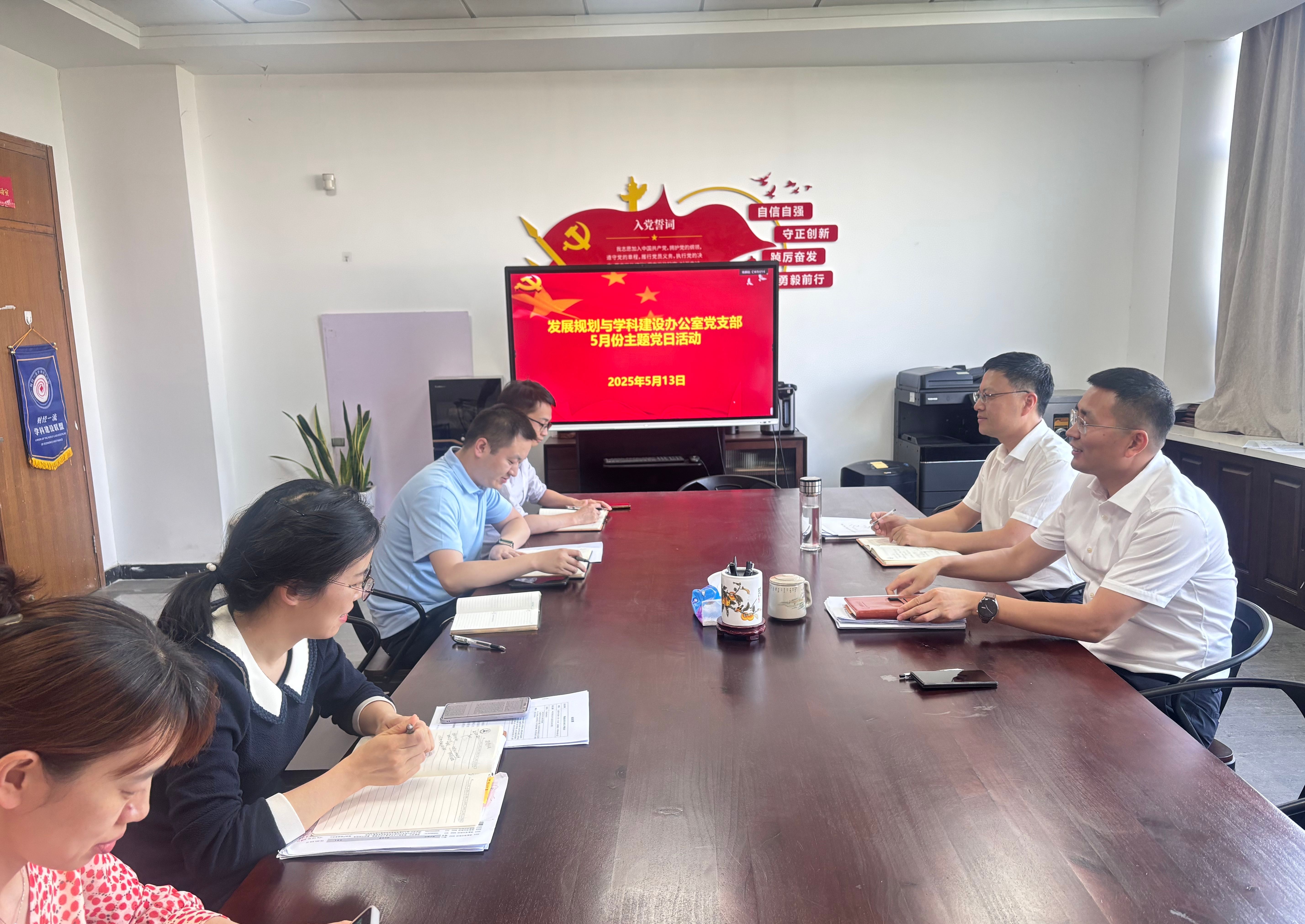 2025年5月13日下午2:30,发展规划与学科建设办公室党支部以“锲而不舍落实中央八项规定精神,持续深化纠‘四风’树新风”为主题在中原楼704会议室召开5月主题党日活动。支部全体成员参加,支部书记庞明礼同志主持主题党日活动。