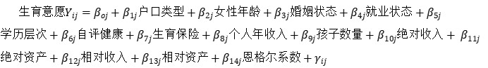 国内学者目前尚无人考虑收入和资产对生育意愿的基尼系数效应,但上述研究思路可资借鉴。从国家的宏观层面上来,收入和资产的不平等会对社会的各个方面产生影响,包括对居民生育意愿的影响;收入和资产的不平等越严重,对居民生育意愿的影响越深。从社区的微观层面上来,社区内部个体的收入和资产差异越大,对个体的生育意愿调节效应越大。基于此,本研究提出如下假设: