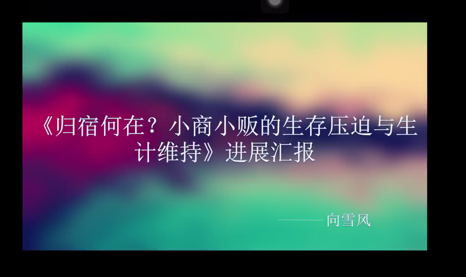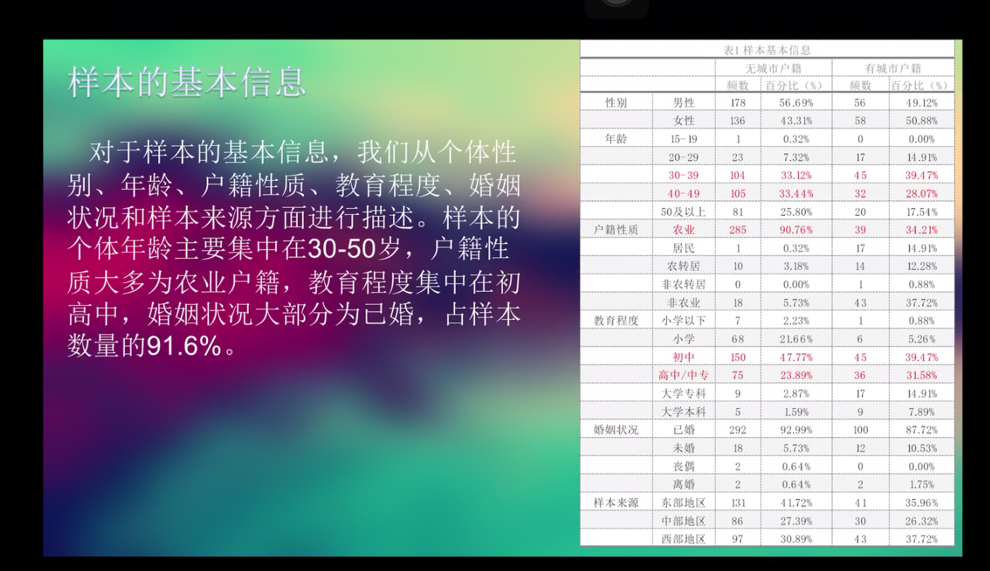 接着是专题四“归宿何在?小商小贩的生存压迫与生计维持”的分享,汇报人向雪风首先介绍了项目的进度,然后从研究背景政策介绍、样本基本情况和对家庭月收入、城市融入等因素进行详细讲解。在讲述过程中提出了数据研究中遇到的问题,也就此展开了后续的讨论。王春凯师兄和刘宇洋师兄分别对该组研究中的职业特殊性和数据的调研提出宝贵意见,小组负责人吕捷对师兄们的问题作出回应。