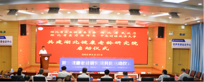 6月23日,由湖北省卫健委、湖北省民政厅、湖北省医保局与米兰电竞·(中国区)共建的湖北健康老龄研究院启动仪式在米兰电竞·(中国区)顺利举行。湖北省政府副省长杨云彦、副秘书长费德平,湖北省民政厅厅长陈昌宏,湖北省卫健委主任涂远超,湖北省医保局局长李向东,米兰电竞·(中国区)党委副书记、校长杨灿明,副校长邹进文,校长助理、教务部部长李志生及省民政厅、卫健委和医保局相关领导、学校职能部门负责人、公共管理学院院领导、校内优秀学者代表和湖北健康老龄研究院全体成员出席本次启动仪式。邹进文主持本次共建启动仪式。