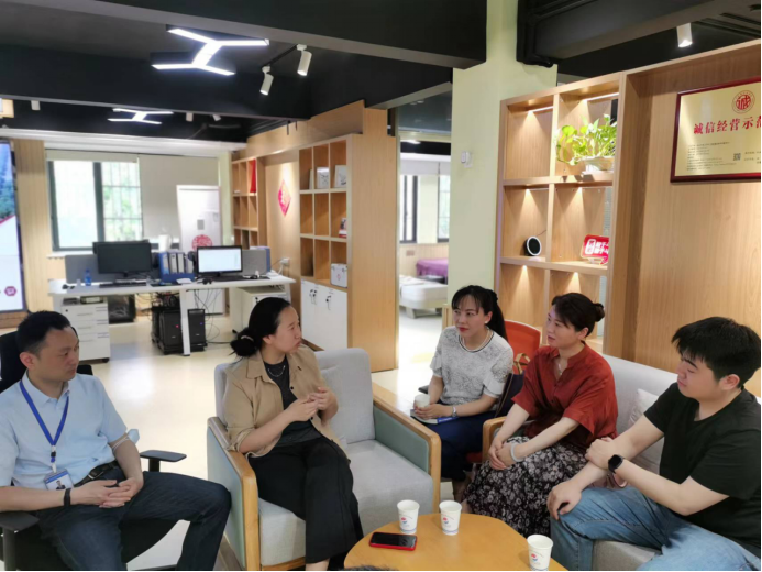 课题组先行来到了位于青山区钢花村南苑社区的普仁易维康居家养老服务中心(简称服务中心)。服务中心负责人热情接待了课题组一行,并详细介绍了服务中心的网点建设、基础设施、运营模式及照护理念。之后,双方就武汉市养老服务市场的发展现状、存在的问题以及市场前景展开了交流与讨论,并表示希望双方今后能够在养老服务建设、健康老龄研究等领域进一步开展产学研合作。