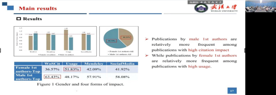 Professor Zhang Lin's presentation focuses on a recent article published by her team in Scientometrics: Gender differences in the aims and impacts of research. The article analyses how the impact of research published by academics differs between genders and how this difference in impact can be explained. How can this difference in impact be explained?