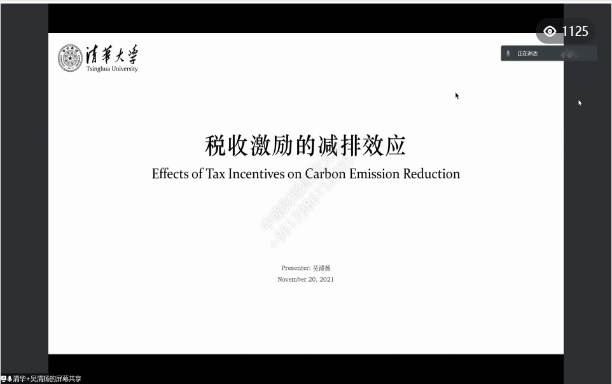 This was followed by a paper entitled "The Emission Reduction Effect of Tax Incentives" presented by Dr Wu Qingyang from Tsinghua University. The paper obtained the following conclusions through DID empirical analysis: tax incentives cut the regional carbon emission intensity, removed institutional tax barriers to industrial restructuring, accelerated enterprises' phase-out of traditional machinery and equipment, and formed an effective disincentive to traditional energy consumption. Afterwards, Associate Professor Zhao Ying from the School of Public Finance and Taxation made suggestions on the paper from four aspects: analysis logic, data processing, empirical strategy and mechanism analysis.