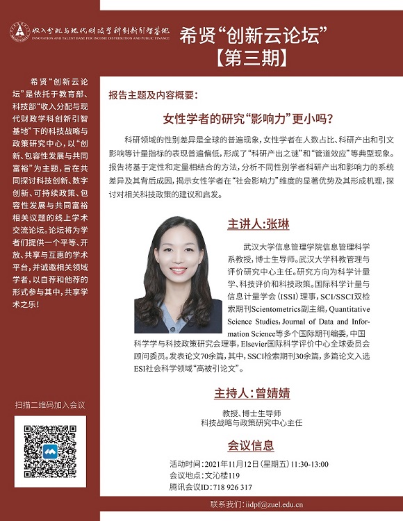 Gender disparities in research are a common global phenomenon, and female scholars are generally underperforming in terms of number, research output and citation impact, resulting in typical phenomena such as the "research output puzzle" and the "pipeline effect". The report will analyse the systematic differences in the research output and impact of scholars by gender and the reasons behind them based on a combination of qualitative and quantitative methods, reveal the significant advantages of female scholars in the dimension of "social influence" and the mechanisms of their formation, and discuss the recommendations and inspirations for relevant science and technology policies.