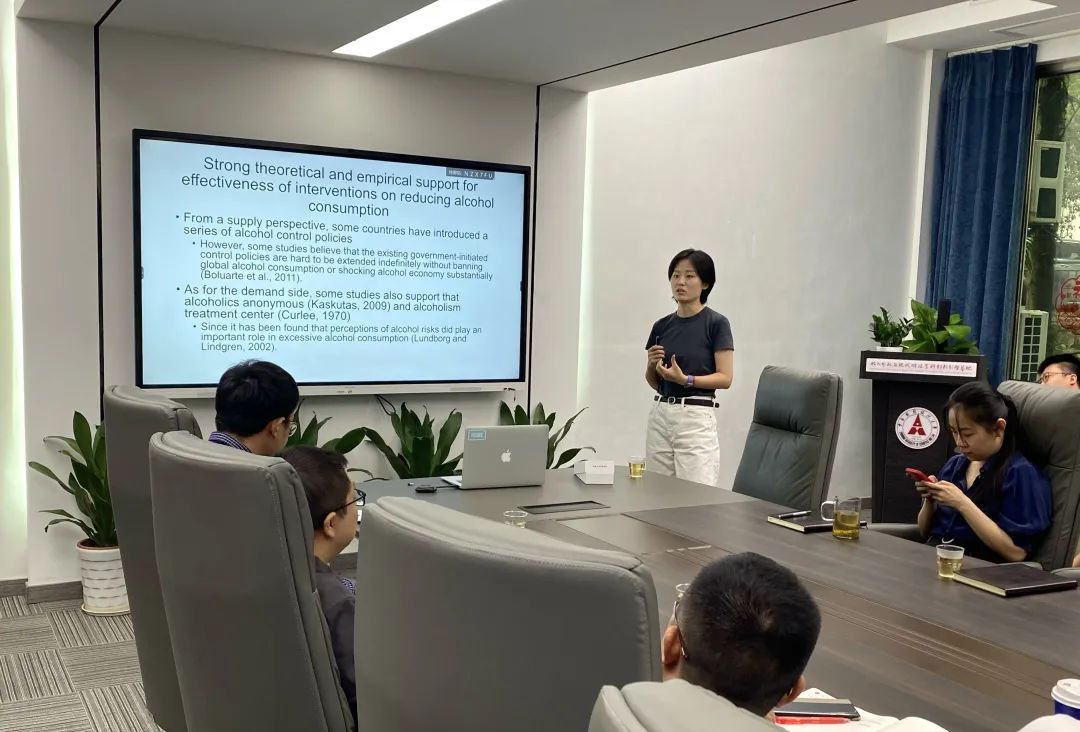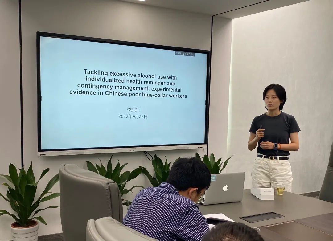 The 18th Xi Xian Academic Luncheon, co-organised by IIDPF and the School of Public Finance and Taxation, was successfully held on 21 September 2022 in Conference Room 119, Wenqin Building. Dr Li Shanshan, a full-time researcher at IIDPF, was the guest speaker for this academic luncheon and presented an academic lecture entitled Tackling excessive alcohol use with individualized health reminder and contingency management: experimental evidence in Chinese poor blue-collar workers.The forum was chaired by Professor Sun Qunli, Deputy Director of IIDPF, and was attended by Professor Lu Yuanping, Executive Deputy Director of IIDPF, Professor Li Bo from the School of Public Finance and Taxation, Associate Professor Huang Hongwei from the School of Public Administration, and more than 30 faculty members and students including all researchers of IIDPF.