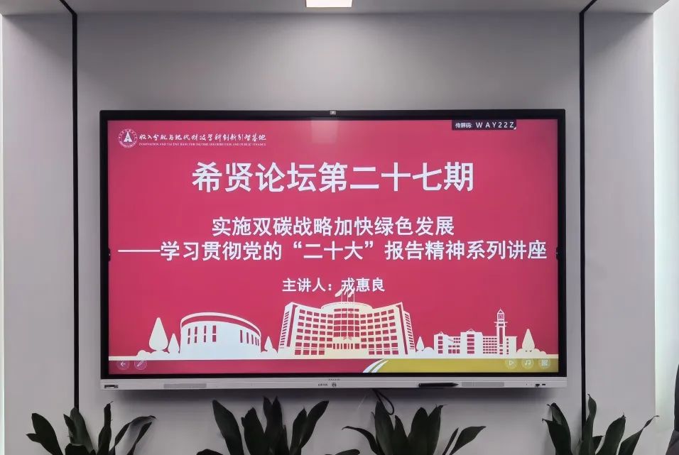The 27th Xi Xian Forum on Income Distribution and Public Finance, co-organised by IIDPF and the Institute of Public Finance and Taxation, was successfully held on 20 October 2022 in Conference Room 119, Wenqin Building. As the guest speaker of the 27th Xi Xian Forum, Professor Rong Huiliang, Distinguished Researcher of the Chinese Academy of Social Sciences, was invited to deliver a keynote speech on "Implementing the Double Carbon Strategy to Accelerate Green Development - A Series of Lectures on Learning and Implementing the Spirit of the Report of the 20th Party Congress". The forum was chaired by Professor Sun Qunli, Deputy Director of IIDPF, and attended by more than sixty faculty members and students, including IIDPF researchers Associate Professor Wan Qian and Dr Zhang Fan.
