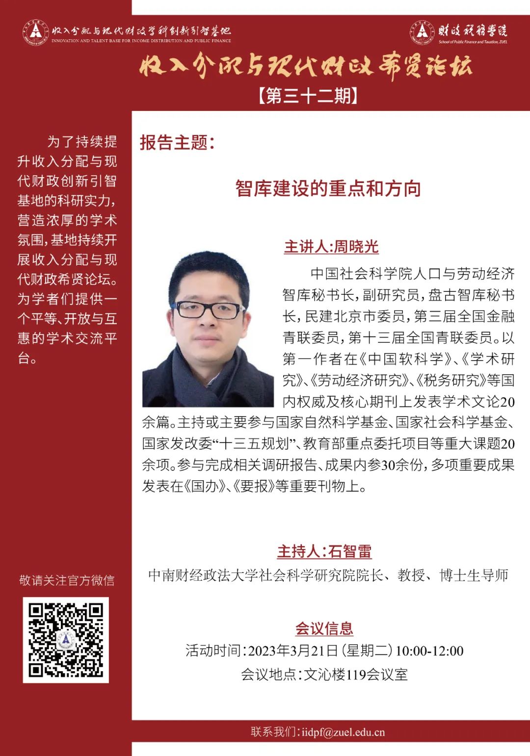 Zhou Xiaoguang is the Secretary General of the Population and Labour Economy Think Tank of the Chinese Academy of Social Sciences, an Associate Researcher, Secretary General of Pan’gu Think Tank, a member of the DAB Beijing Municipal Committee, a member of the 3rd China Financial Youth Federation, and a member of the 13th All-China Youth Federation. He has published over 20 academic articles as the first author in domestic authoritative and core journals such as China Soft Science, Academic Research, Studies in Labour Economics and Taxation Research. He has chaired or participated in more than 20 major projects, including the National Natural Science Foundation of China, the National Social Science Foundation of China, the 13th Five-Year Plan of the National Development and Reform Commission, and other key projects commissioned by the Ministry of Education. He has participated in the completion of more than 30 relevant research reports and results insider reports, and many important results have been published in important publications such as Reports for the State Office and The Collection of Important Reports.