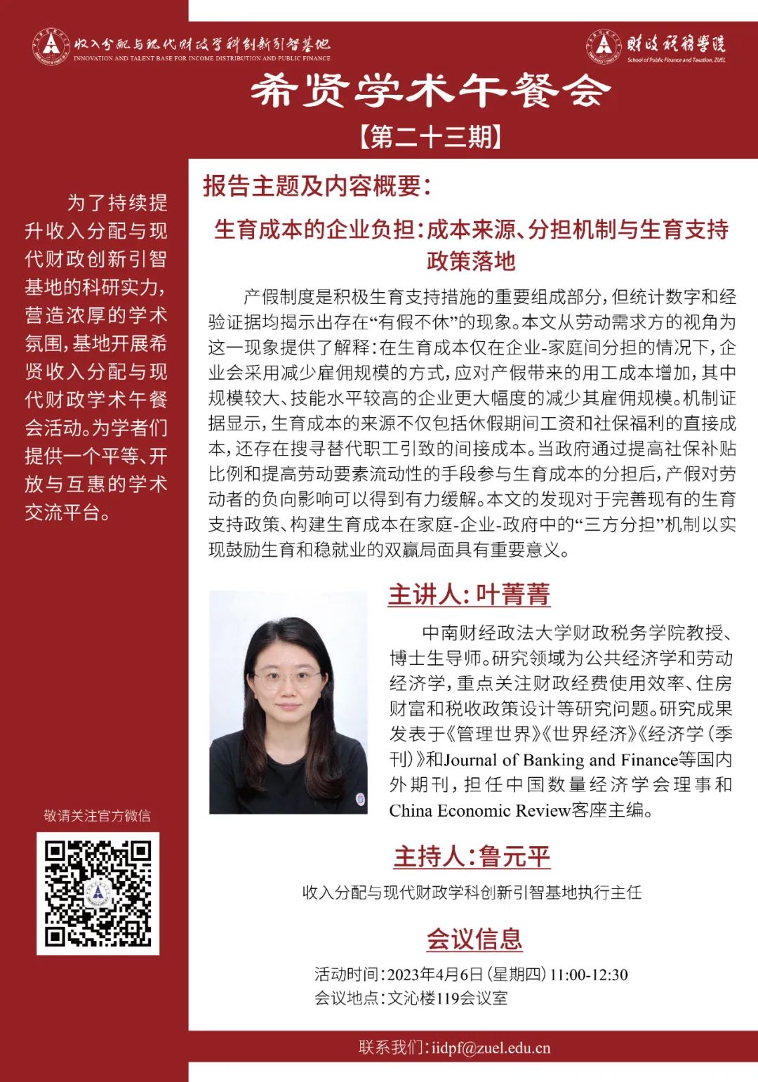 Venue: Conference Room 119, Wenqin Building