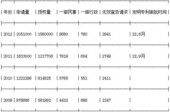 数据来源:国家知识产权局:《中国知识产权保护状况》(2009-2012年)