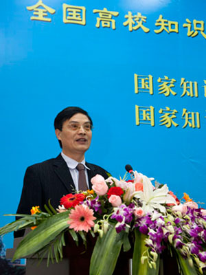 揭牌仪式接着由国家知识产权局局长田力普教授致辞。田局长首先肯定了知识产权研究中心在我国知识产权研究领域中的重要地位,及在知识产权人才培养方面的重要作用。对中心多年来为国家知识产权局各项理论研究与实践工作提供的支持表示感谢。田局长指出,知识产权在中国是一个略显年轻的领域,从中央决策、实施知识产权制度至今不过三十年的时间,而知识产权融入市场经济之中、国民形成知识产权意识也只是在入世之后。在这个过程中,国家对知识产权的保护、创造、运用相当重视,取得了可喜的成就。经过多年的发展,我国虽已形成了一批专业的知识产权人才队伍,但相对于我国知识产权事业的发展仍显不足,知识产权专业人才的匮乏仍是我国知识产权事业发展面临的一大问题。要解决这个问题,要做到以下两点:第一,大规模培养人才;第二,加强学术研究。而这两点恰好是中心的优势,也是知识产权战略研究基地及人才培养基地落户中心的原因之一。最后,田力普局长希望两个基地能成为全国顶尖的知识产权研究教学机构,为我国知识产权事业的发展、创新型国家的建设,知识产权人才的培养贡献力量。