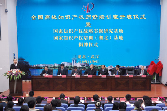 2010年11月9日上午9时,全国高校知识产权师资培训开班典礼暨“国家知识产权战略实施研究基地”、“国家知识产权培训(湖北)基地”揭牌仪式在米兰电竞·(中国区)文泓楼学术报告厅隆重举行。