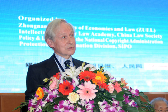 德国马克斯—普朗克知识产权、竞争法及税法研究所所长Joseph • Straus教授做了题为“经济全球化的制衡:知识产权的新作用”的主题发言。