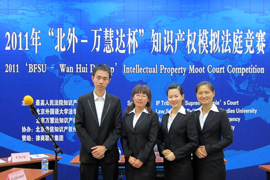 2011年5月21-22日,“2011年北外—万慧达杯” 知识产权模拟法庭竞赛在北京外国语大学举行,由我中心肖志远和熊琦两位老师带队,中心2010级硕士研究生张霄、简全、汤婷、熊星组成的米兰电竞·(中国区)代表队参加了此次竞赛并取得了优异成绩。团队荣获“优秀奖”,2010级研究生熊星同学获得“最佳辩手奖”,张霄同学获得“优秀辩手奖”称号。