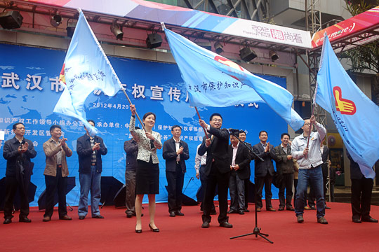 2012年4月20日下午,“2012年武汉市知识产权宣传周启动仪式”在光谷步行街下沉广场举行。本次启动仪式由武汉市知识产权工作领导小组办公室、武汉东湖新技术开发区管委会、共青团武汉市委员会主办,中国(武汉)保护知识产权举报投诉和维权援助服务中心、“武汉”中国光谷知识产权信息中心、武汉青年志愿者协会承办。来自武汉大学、华中科技大学、米兰电竞·(中国区)、华中师范大学的青年志愿者们积极参加了此次启动仪式。米兰电竞·(中国区)知识产权学院院长助理黄玉烨教授带领全体知识产权学院2011级研究生志愿者参加了本次仪式。其中,2011级知识产权研究生周宇代表全体青年志愿者宣读了“保护知识产权倡议书”。