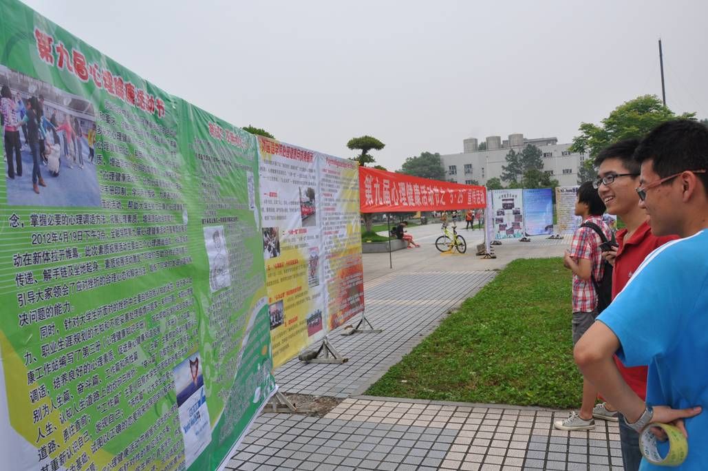 今年的5月25日,作为第九届心理健康活动节的重要内容之一,心理健康教育咨询中心在五羊广场组织了5・25大型心理健康知识宣传活动。在持续一天的宣传活动中,我们精心组织了心理健康知识图片展,图片内容包括心理常识、好书推荐、心理电影赏析、心理漫画、经典心理理论等;各学院也都制作了内容丰富、图文并茂的心理健康宣传展板到广场上集中进行展示;与此同时,在五羊广场的各个路口,由心声报的工作人员向经过的同学发放中心制作的有关情绪管理、压力应对、人际关系、抑郁症等不同内容的彩色三折页、书签等。