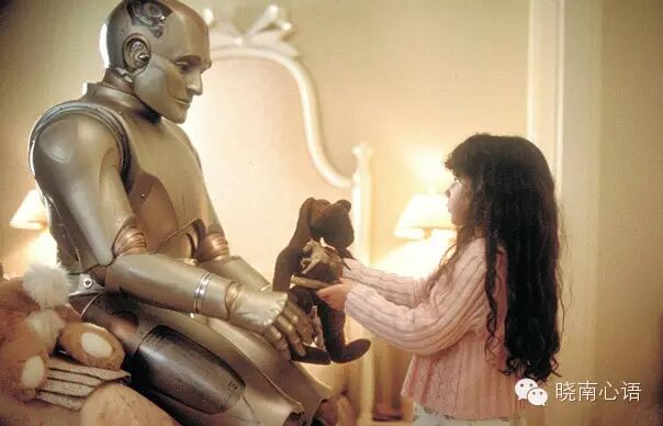 在《人工智能》里,大卫经历了种种磨难,最后幻化成人,找到了妈妈,但在坎坷路上,泰迪熊一直没有离开过它,还记得那个虐心的长镜头吗?利欲熏心的人类把泰迪从地上一路扔进垃圾桶,还要和大卫一起接受泼硫酸和车裂的危险――心!都!碎!了!就这样,泰迪在海底陪伴着大卫,直到外星来客唤醒了他们,大卫和妈妈安详地睡着,泰迪爬上床,坐在那,静静地守候着主人醒来,虽然它知道,这份等待只能延续一天。
