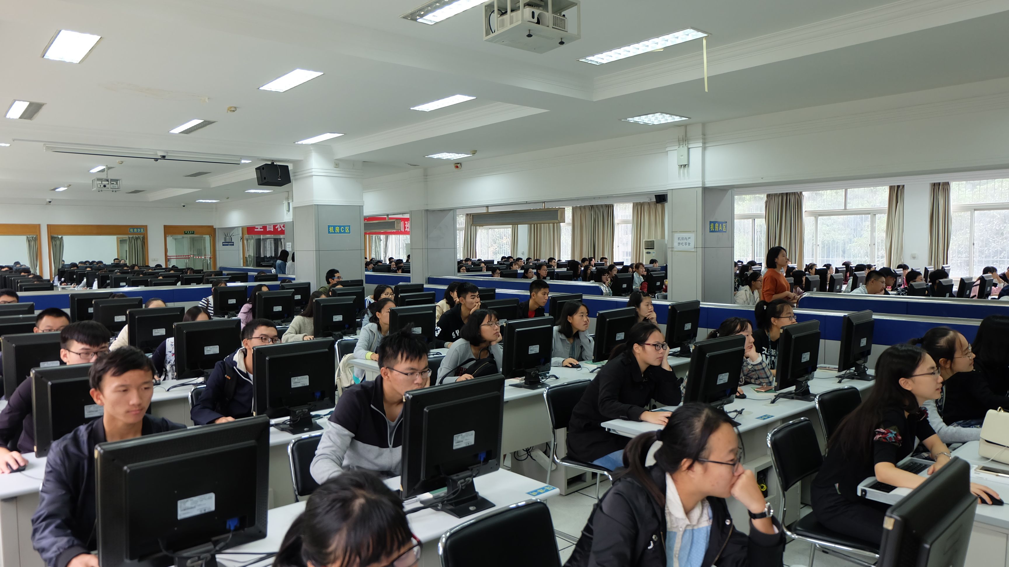 测评活动在首义、南湖两个校区进行,分别由中心专职教师刘青和余金聪主持现场工作。测评运用电脑施测,主要通过心理量表的形式要求学生进行作答,共分31个场次,其中特别为首义校区时间变动的学生多开设一场,平均每场接待近200名学生。