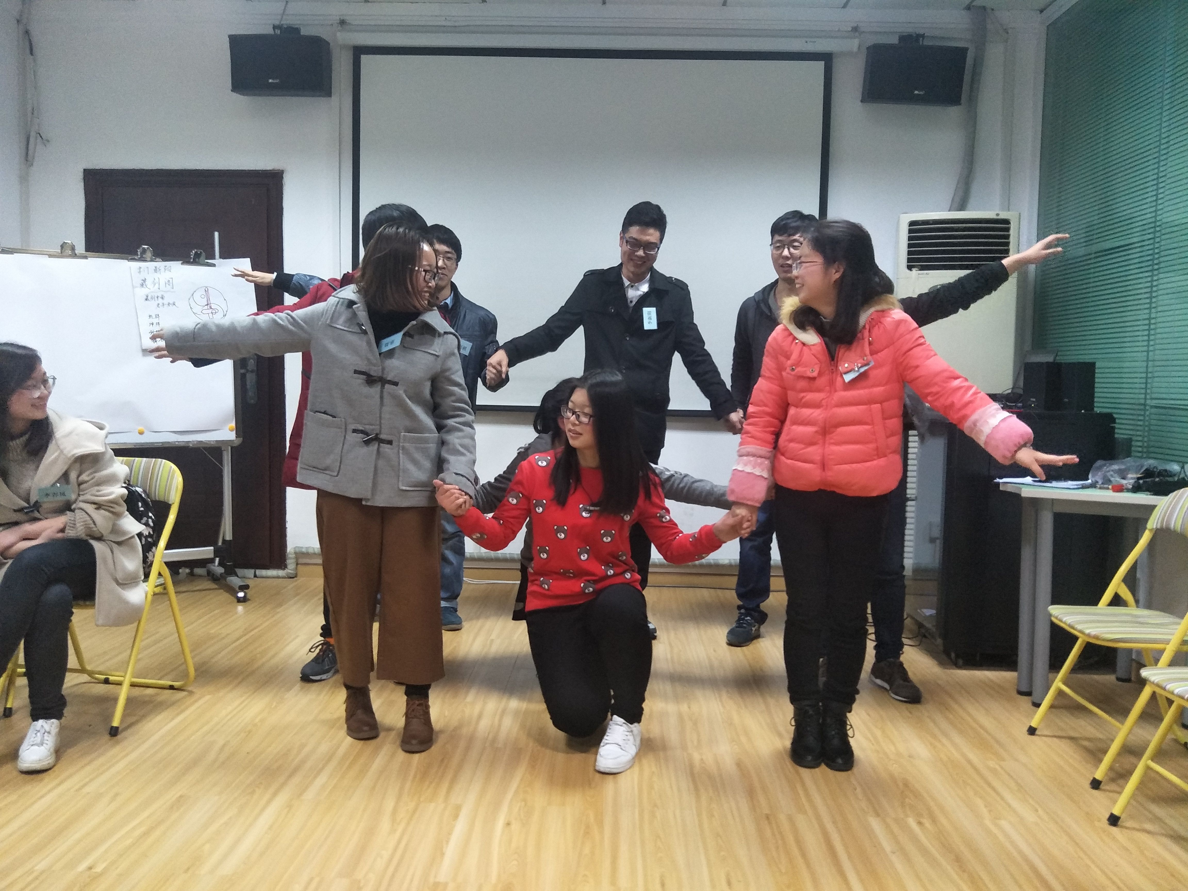 经过这个游戏环节,30名心理委员被分为三个小组。余老师要求各小组选队长、起队名、想口号,同时设计小组形象。所有同学都非常积极地投入到小组建设中。最后,每个小组上台介绍自己的队伍,展示自己小组的形象。伴随着大家的欢声笑语,本次活动圆满结束。