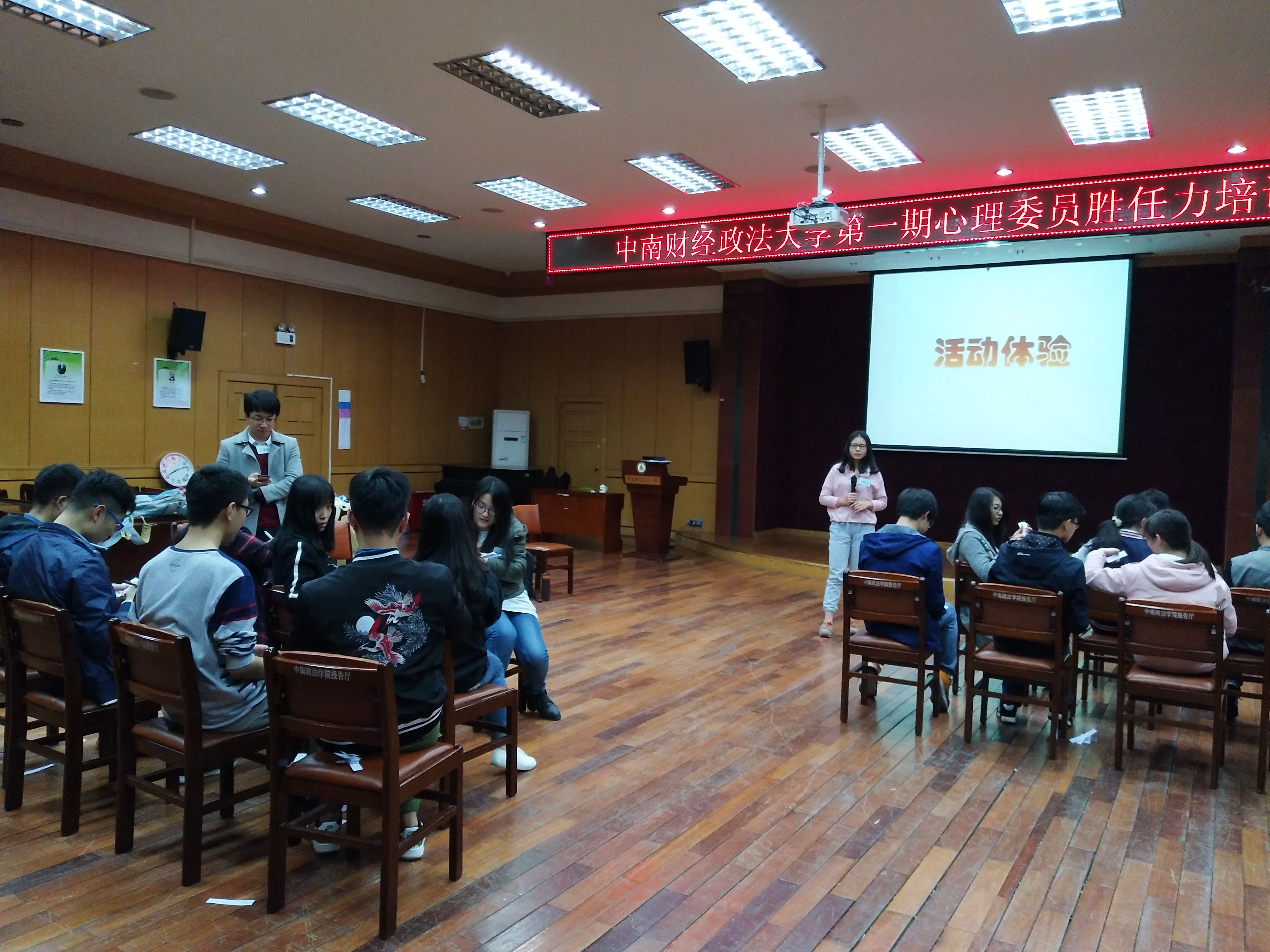 (通讯员 李晶 余金聪)3月31日,我校首期心理委员胜任力培训班的第五次活动在文潭楼四楼报告厅顺利开展,本次活动的主题为“班级团体心理活动的组织”,由心理中心专职教师余金聪主讲。首期培训班中的大部分心理委员参加本次活动。