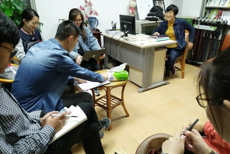 第二个环节是沟通技能演练。演练环节通过体验性的方式呈现,助理们现场模拟值班过程中的来电情景,涉及到常规的预约接待、临时请假、协调同学咨询时间等情景。每一轮模拟均由一位助理扮演来电同学,另一位助理接听电话,其他助理观摩学习并反馈建议,最后张春燕老师点评总结。