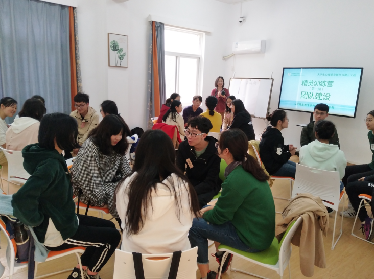 精英训练营面向2017级部分心理委员,每周培训一次,将持续十二周。首场培训以“团队建设”为主题,由心理中心专职教师余金聪主讲,来自法学院、经济学院、工商管理学院等九个学院的21名心理委员参加学习。余金聪通过“破冰”“分组”“团队形象展示”“梦想画报”四个游戏环节,让心理委员们从陌生到熟悉,逐渐融入课堂氛围,达成一致的学习目标,为后续深入的体验活动做好准备。