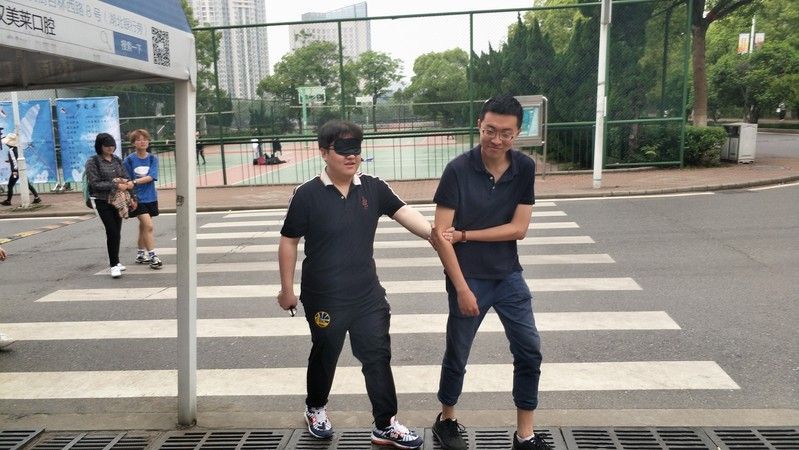 活动的规则为两两组成一组配对,一人是盲人,一人是聋哑人,两人合作下,从旧体出发,共同到达目的地——希望之门(文治一楼会议室)。途中,同学们会遇到各种挑战,比如台阶、马路、车辆、周围人好奇的眼光等等。