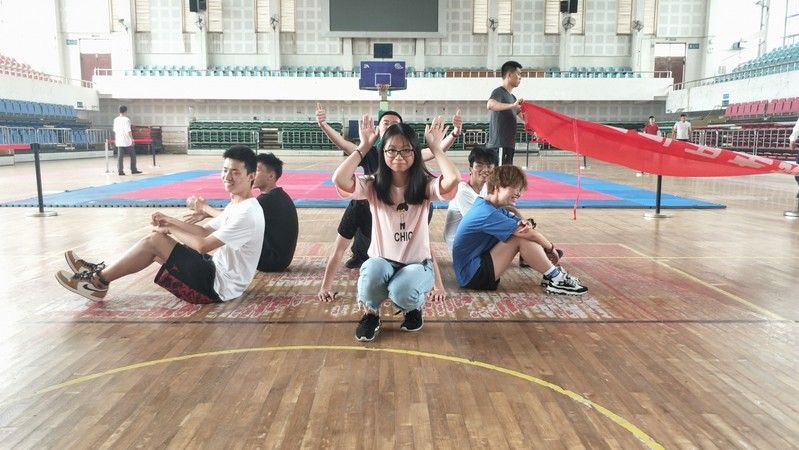 分好组后就进行“手足情深”的游戏,七个人围成一个圈,根据抽到的卡片提示和左右两旁的完成指定动作,并坚持五秒,率先完成的一组获胜。最终我们的“刑司人民真争气队”取得了最终胜利。