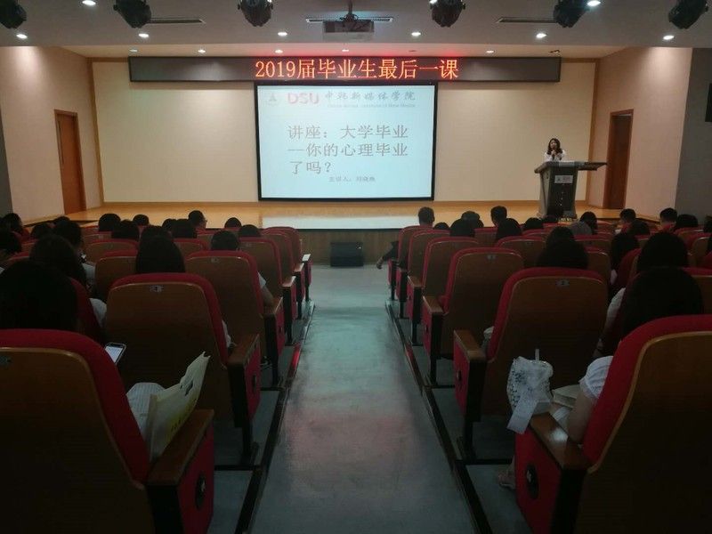 (通讯员 刘祚衡)5月9日下午,中韩新媒体学院在文济楼201大礼堂召开“2019届毕业生心理调适讲座”。本次讲座由学院党总支副书记刘晓燕主讲,毕业班辅导员畅赵颖、刘祚衡及全体2019届毕业生参加了此次讲座。